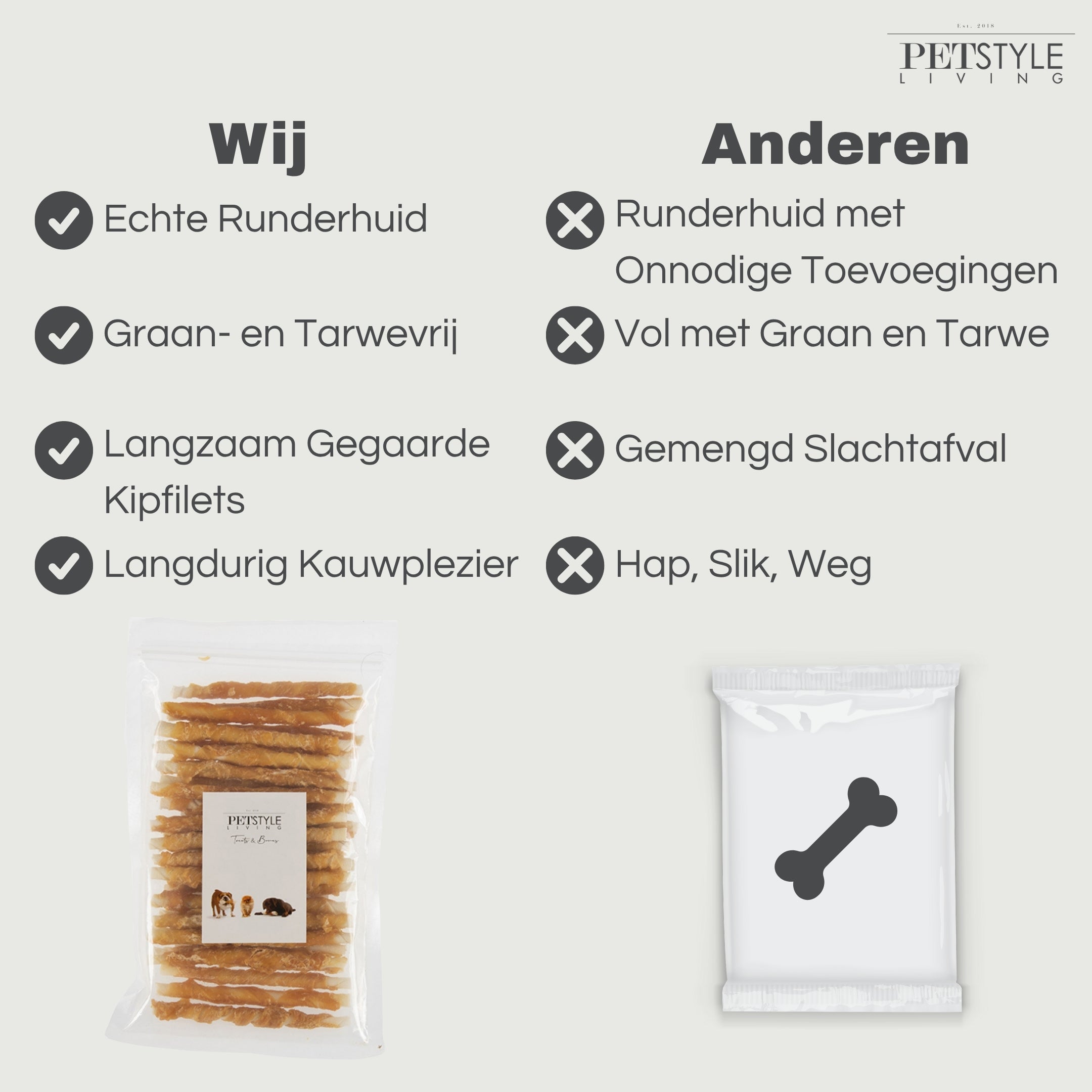 Die gedrehten Stöcke von Petstyle Living bestehen zu 100 % aus Rindsleder. Dank ihrer festen, fein gedrehten Textur bieten diese Kauknochen langanhaltenden Kauspaß, den Hunde lieben. Die Kombination aus Rohhaut und Hühnchen macht die Knochen nicht nur schmackhaft, sondern fördert auch das natürliche Kauverhalten. Ein täglicher Snack, der sich wie eine sinnvolle Belohnung anfühlt.